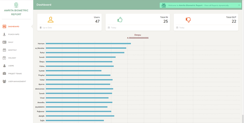 Device gives accurate punch in and punch out times purely based on fingerprint sensing. Device can be connected to any given LAN so as to manage the device. A web based application will provide assistance for easy management and monitoring of the attendance marked. Software allows employers to track each swipe in and swipe outs to compute the total effective work hours spend over a day within the work area. Device comes in 300, 1000, 3000 and 5000 finger print storage capacity. For 3000 and 5000 storage capacity devices it is possible to extract the stored biometric data from the device and reload the same to another device of same make/model in case the sensor goes faulty. This will eliminate the need for registering the users once again which will be a cumbersome process if the number of registered user volume is high.
